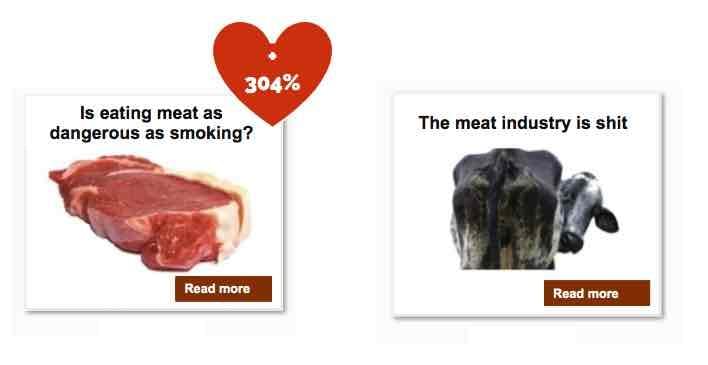 The banner with the meat image got over 4 times as many clicks as the one with the cow. The frustrating thing is that A/B tests tell you what the winner is. But they don't tell you why.